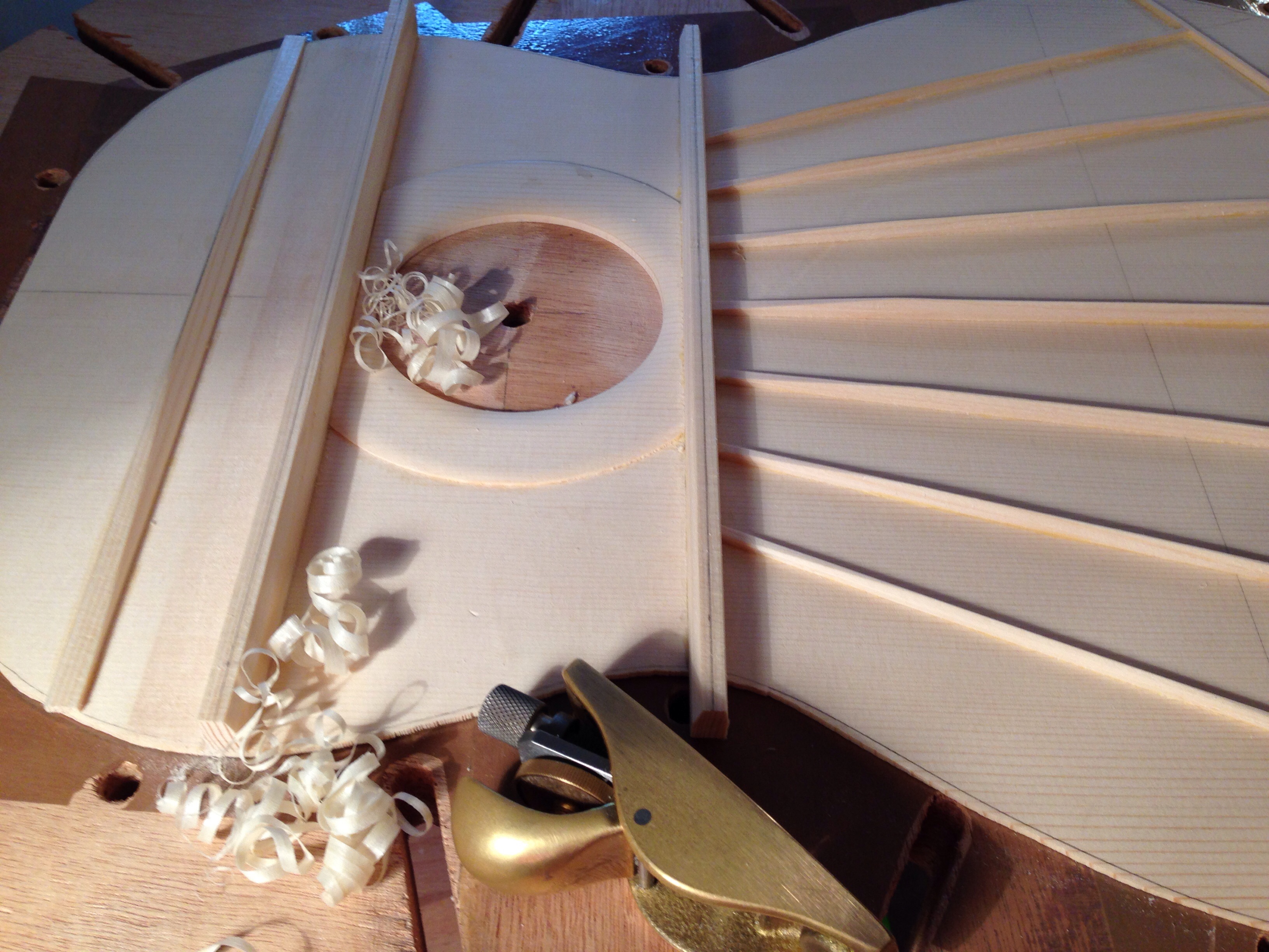 The sound board, back and sides are all hand planed to thickness to within 0.1mm tolerance.